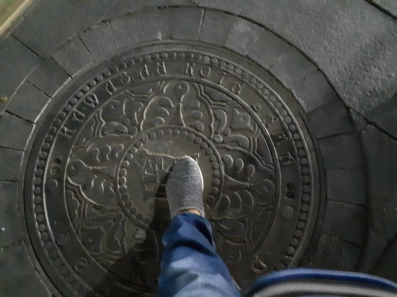 Dari arah pool Damri kami menyeberang jalan ke kawasan Kota Lama lalu menyusuri pedestrian sepanjang jalan Mpu Tantular. Melewati Cafe Sepur dan berfoto di depan miniatur keretanya yang berkelip-kelip, lalu gedung PELNI, juga sebuah bangunan yang kayak rumah hantu karena sepertinya kosong lama dan seram auranya. hiiiii.... Then sempat berfoto-foto sebentar di depan gedung Bank Mandiri, merekam jejak kaki di salah satu ubin trotoarnya yang apik dan nyeni.