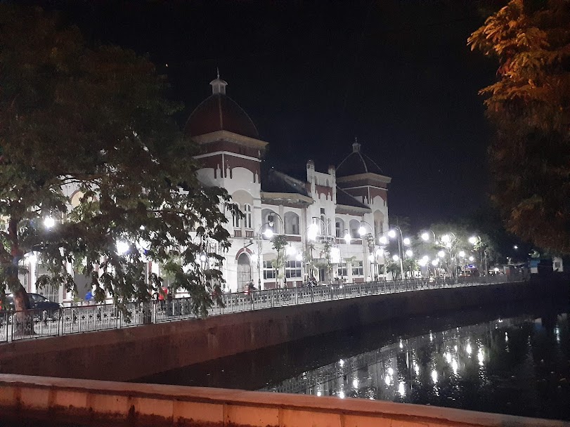 Sepupu mereka menjemput kami yang menunggu di jembatan Berok sembari menikmati sisa malam itu. Bangunan PTPN yang kuceritakan tadi tampak indah dari sisi kami berdiri. Lampu-lampu sorot menonjolkan estetika arsitekturalnya, kekuatan fasade yang dibentuk dari detail elemen-elemen yang diperhitungkan dengan cermat menggunakan proporsi Vitruvius Da Vinci. Suasana bangunan di tepi kanal ini mengingatkanku saat di Belanda Juni 2019 lalu. Sayangnya kali Berok mengeluarkan bau tak sedap sehingga itulah yang membedakannya dengan suasana di Belanda yang air dan udaranya bersih. Waduh, jadi kangen Netherland.